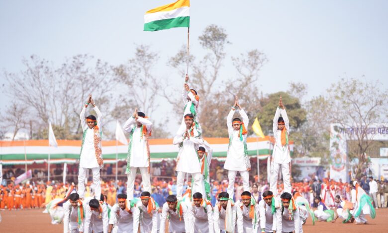 प्रथम प्रस्तुति में कस्तुरबा गांधी आवासीय बालिका विद्यालय, सरगुजा (छत्तीसगढ़) के 206 छात्राओं ने “विकसित भारत, बढ़ता भारत” थीम पर मनमोहक प्रस्तुति दी। कार्यक्रम में बस्तर और सरगुजा की माटी की खुशबू, विशेष पिछड़ी जनजातियों की पारंपरिक वेशभूषा में करमा और दमकच नृत्य, नारी शक्ति, सशक्त किसान और मजबूत जवान के संदेश को प्रभावशाली ढंग से प्रस्तुत किया गया। समापन पर कलाकारों ने तिरंगे के रंगों के साथ “जय जोहार, जय छत्तीसगढ़” का उद्घोष किया।