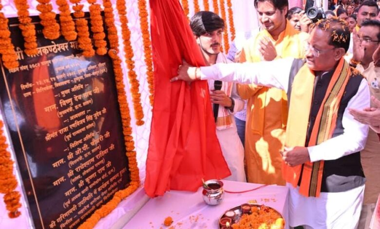 नीलकंठेश्वर महादेव मंदिर के प्राण-प्रतिष्ठा समारोह में मुख्यमंत्री विष्णु देव साय हुए शामिल, सामुदायिक भवन निर्माण की घोषणा की