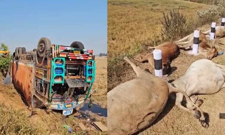 मवेशियों से भरा कंटेनर पलटा, 50 से अधिक गायों की हुई दर्दनाक मौत