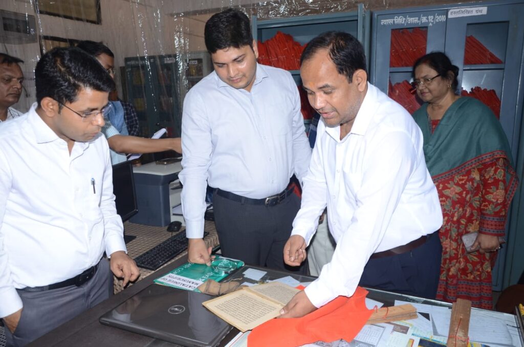 ज्ञान भारतम् मिशन: कलेक्टर पहुंचे शासकीय संस्कृत कॉलेज, पाण्डुलिपि एवं ताम्रपत्र का किया अवलोकन