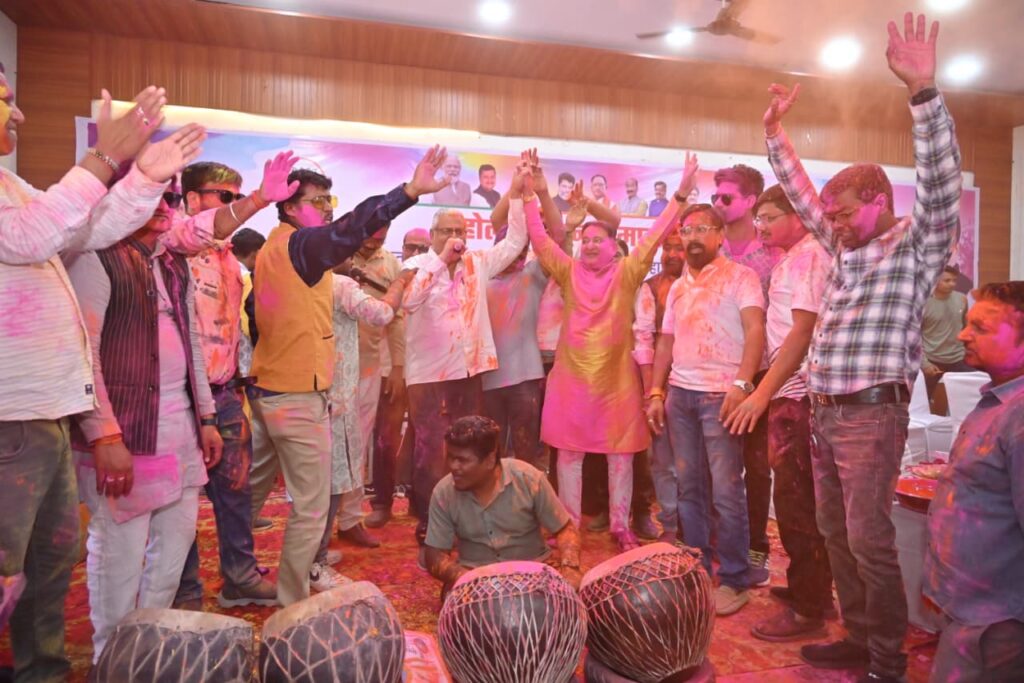 बसना के मंगल भवन में होली की धूम: विधायक डॉ. संपत अग्रवाल ने नगाड़े की थाप पर लगाए ठुमके, क्षेत्रवासियों को दी सौगात