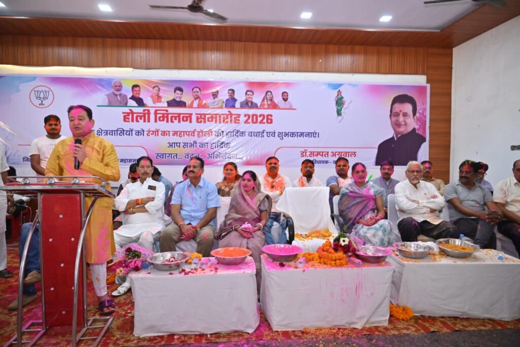 होली स्नेह मिलन समारोह के दौरान भाजपा के जिला संयोजक (आर्थिक प्रकोष्ठ) सुमित अग्रवाल ने उपस्थित जनसमूह और क्षेत्रवासियों को पर्व की बधाई देते हुए कहा कि होली का यह पावन त्योहार हमारे जीवन में नई ऊर्जा और खुशियों के रंग भरता है। उन्होंने सभी के सुखद भविष्य और बेहतर स्वास्थ्य की कामना करते हुए प्रेम, शांति और आपसी सद्भाव के साथ इस उत्सव को मनाने का संदेश दिया।