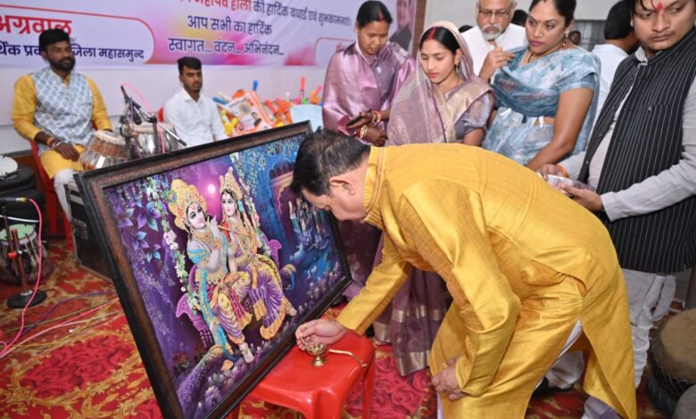 कार्यक्रम का औपचारिक आगाज़ विधायक डॉ. संपत अग्रवाल द्वारा भगवान राधा-कृष्ण के तैलचित्र पर दीप प्रज्वलन और विधिवत पूजा-अर्चना के साथ किया गया। उन्होंने प्रदेश की सुख-समृद्धि और शांति की कामना करते हुए उपस्थित जनसमूह को प्रेम के रंगों में सराबोर होने का संदेश दिया।