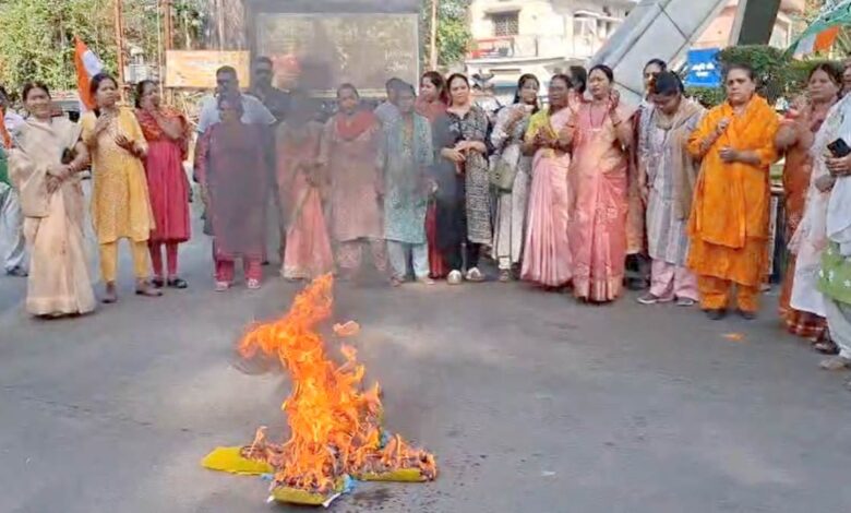 साड़ी खरीदी में 9.7 करोड़ घोटाले का आरोप, महिला कांग्रेस ने फूंका मंत्री लक्ष्मी राजवाड़े का पुतला
