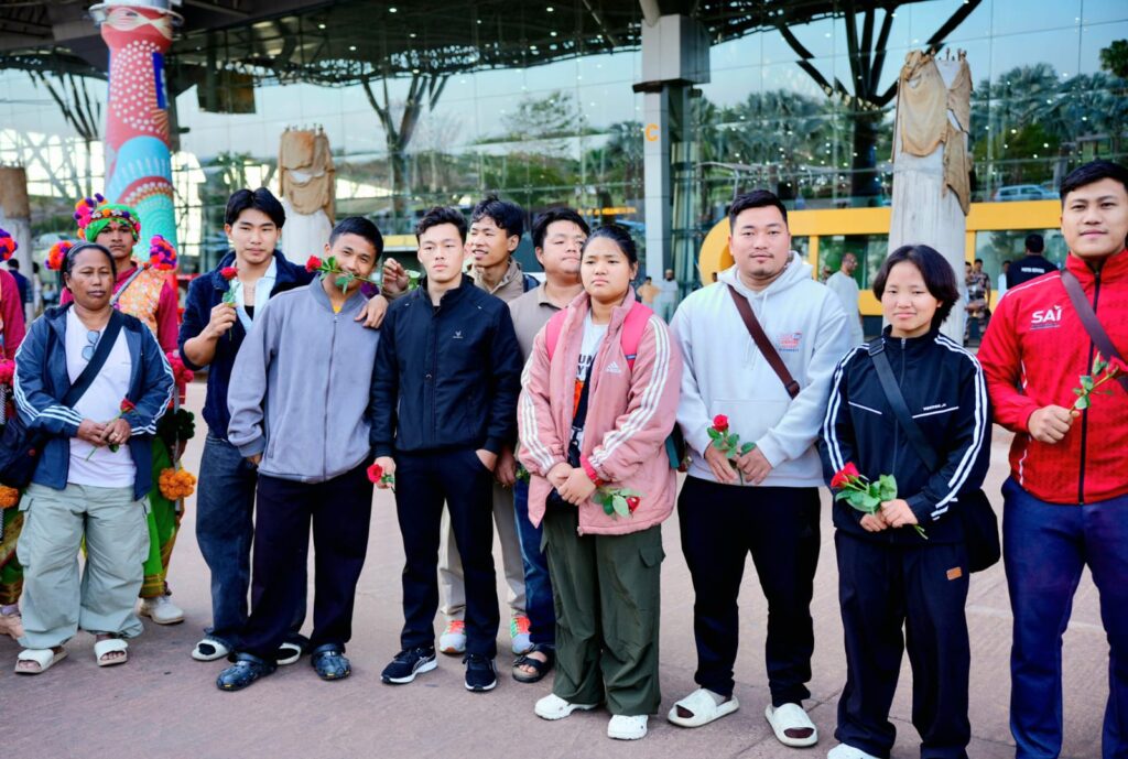 खेलो इंडिया ट्राइबल गेम्स के लिए खिलाड़ियों का छत्तीसगढ़ पहुंचना शुरू, अरुणाचल के वेटलिफ्टरों का विमानतल पर रंगारंग स्वागत
