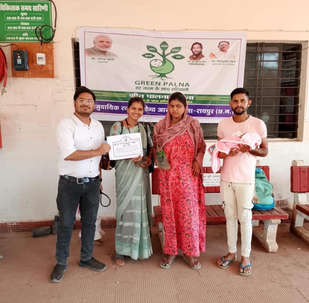 रायपुर। मुख्यमंत्री विष्णुदेव साय की पर्यावरण संरक्षण हेतु प्रतिबद्धता के अनुरूप रायपुर जिला प्रशासन द्वारा “प्रोजेक्ट ग्रीन पालना” अभियान को प्रभावशाली ढंग से आगे बढ़ाया जा रहा है। इस अभिनव पहल के तहत शासकीय अस्पतालों में प्रसव उपरांत माताओं को फलदार पौधे भेंट स्वरूप दिए जा रहे हैं, ताकि एक नई ज़िंदगी के आगमन के साथ एक नया वृक्ष भी धरती पर जन्म ले।