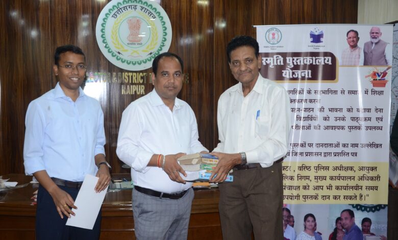 रायपुर। मुख्यमंत्री विष्णु देव साय के मार्गदर्शन में जिले में संचालित स्मृति पुस्तकालय योजना जनभागीदारी का प्रेरक उदाहरण बनती जा रही है। इस पहल के माध्यम से लोग स्वेच्छा से पुस्तकें और इलेक्ट्रोनिक्स गैजेट दान कर युवाओं के उज्ज्वल भविष्य निर्माण में योगदान दे रहे हैं।