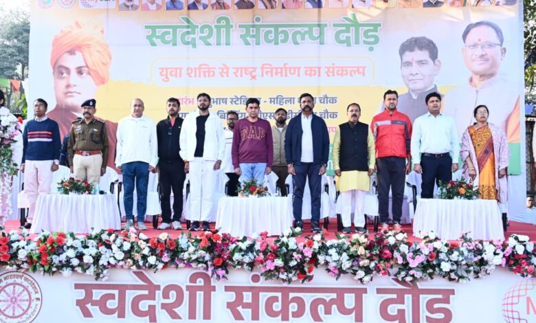 रायपुर। स्वामी विवेकानंद की 163वीं जयंती एवं राष्ट्रीय युवा दिवस के अवसर पर आज रायपुर के सुभाष स्टेडियम से स्वामी विवेकानंद सरोवर तक “स्वदेशी संकल्प दौड़” का आयोजन किया गया। इस आयोजन का उद्देश्य युवाओं में राष्ट्रप्रेम, स्वदेशी भावना एवं सकारात्मक ऊर्जा का संचार करना रहा।