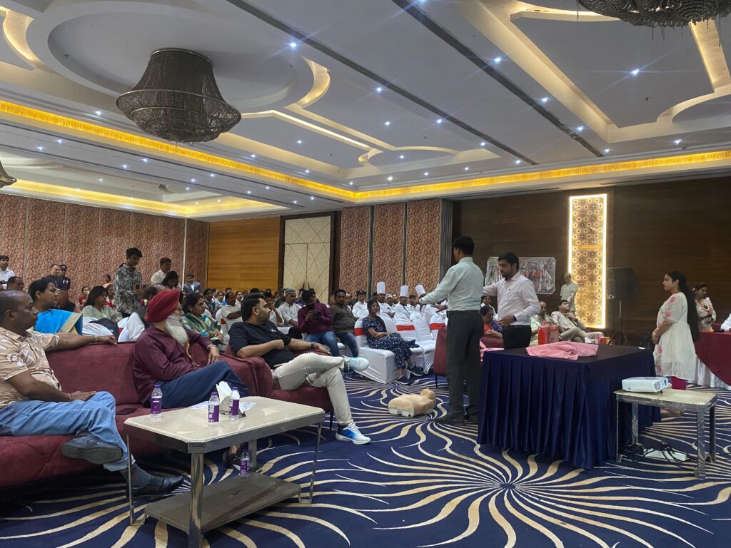 रायपुर। सड़क दुर्घटनाओं की बढ़ती घटनाओं को देखते हुए आम नागरिकों में यातायात नियमों के प्रति जागरूकता बढ़ाने के उद्देश्य से सुरक्षित भव फाउंडेशन के तत्वावधान में सोमवार को विशेष सड़क सुरक्षा प्रशिक्षण कार्यक्रम का आयोजन किया गया। कार्यक्रम में रोड सेफ्टी क्लब का गठन भी किया गया और सीपीआर (CPR) की ट्रेनिंग दी गई।