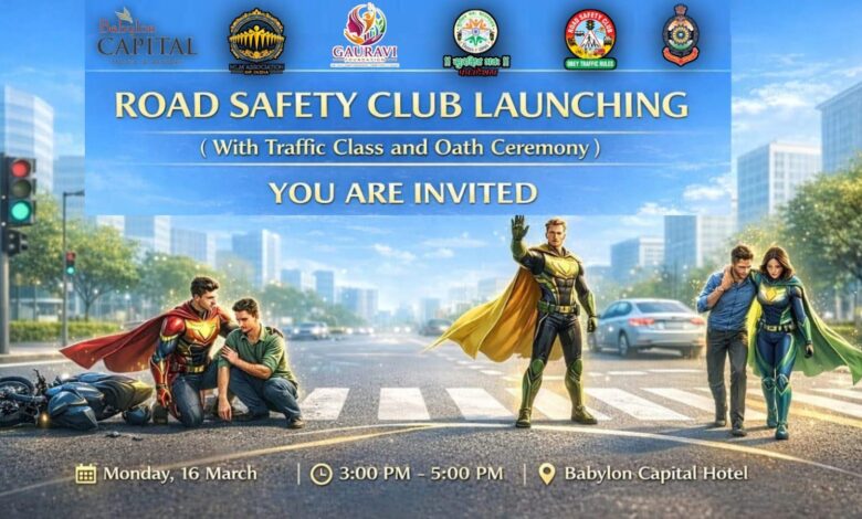 रायपुर। सड़क दुर्घटनाओं की बढ़ती घटनाओं को देखते हुए और आम नागरिकों में यातायात नियमों के प्रति जागरूकता बढ़ाने के उद्देश्य से सुरक्षित भव फाउंडेशन द्वारा 16 मार्च 2026 (सोमवार) को दोपहर 3 बजे एक विशेष सड़क सुरक्षा प्रशिक्षण कार्यक्रम का आयोजन किया जाएगा। इस अवसर पर रोड सेफ्टी क्लब का भी औपचारिक गठन किया जाएगा।