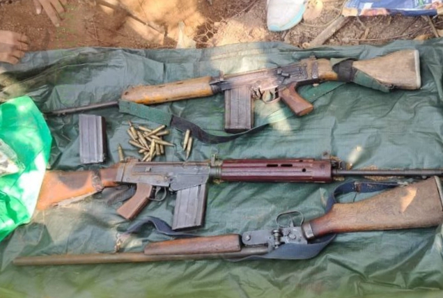 गरियाबंद। जिले में नक्सल उन्मूलन अभियान के तहत सुरक्षाबलों को बड़ी कामयाबी मिली है। जिला पुलिस बल की ई-30 ऑप्स टीम ने सघन तलाशी अभियान चलाकर थाना मैनपुर क्षेत्र के ग्राम बडेगोबरा स्थित सातमारी पहाड़ी में छिपाकर रखे गए नक्सलियों के हथियारों का डंप बरामद किया है, जिनमें 2 एसएलआर, 1 इंसास राइफल, 1 बारह बोर बंदूक, एसएलआर और इंसास की मैग्जिन और जिंदा कारतूस शामिल हैं।