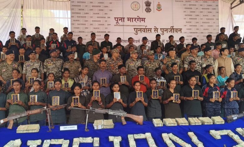 101 हथियारों के साथ 108 नक्सलियों का सरेंडर, 1 किलो सोना और साढ़े 3 करोड़ नगद बरामद
