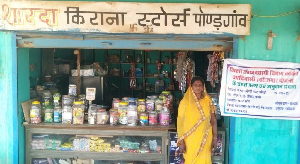 \बारहवीं तक पढ़ी अंतागढ़ विकासखण्ड के पोण्डगांव की श्रीमती शारदा उसेंडी पहले अपने छोटे से किराना दुकान और थोड़ी-बहुत खेती के सहारे जीवन-यापन कर रही थीं। आय सीमित होने के कारण आर्थिक स्थिति में कोई विशेष सुधार नहीं हो पा रहा था। इसी बीच कांकेर के जिला अंत्यावसायी विभाग के माध्यम से उसे जानकारी मिली कि अनुसूचित जनजाति वर्ग के लिए “आदिवासी स्वरोजगार योजना“ के तहत ऋण सुविधा उपलब्ध है। उसने तत्परता दिखाते हुए विभाग में आवेदन दिया। विभाग ने उसके आवेदन को भारतीय स्टेट बैंक, अंतागढ़ भेजा, जहां से उसके लिए एक लाख रूपए का ऋण स्वीकृत हुआ। ऋण के साथ ही विभाग की ओर से दस हजार रूपए का अनुदान भी मिला।
