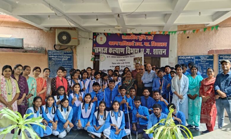 रायपुर, 15 अक्टूबर 2025/ प्रतिवर्ष 15 अक्टूबर को पूरे विश्व में विश्व श्वेत छड़ी दिवस मनाया जाता है। इस अवसर पर विभिन्न चौक-चौराहों पर दृष्टि दिव्यांगजनों द्वारा सामूहिक रूप से श्वेत छड़ी के माध्यम से रैली निकाली जाती है, जिससे आम नागरिकों में दृष्टि दिव्यांग व्यक्तियों के अधिकारों, चुनौतियों और गतिशीलता के प्रति जागरूकता और संवेदनशीलता विकसित हो सके। इसका उद्देश्य समाज में दृष्टिबाधित व्यक्तियों के प्रति सहानुभूति, सम्मान और सामंजस्य की भावना को प्रोत्साहित करना है।इस अवसर पर शासकीय दृष्टि एवं श्रवण बाधितार्थ उच्च माध्यमिक विद्यालय, मठपुरैना, रायपुर के दृष्टि दिव्यांग विद्यार्थियों द्वारा पं. रविशंकर शुक्ल विश्वविद्यालय परिसर में श्वेत छड़ी से चलने का प्रदर्शन कर रैली निकाली गई।