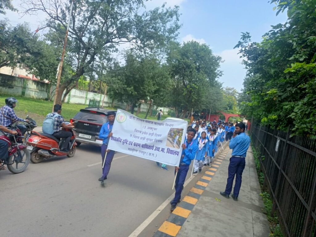 रायपुर, 15 अक्टूबर 2025/ प्रतिवर्ष 15 अक्टूबर को पूरे विश्व में विश्व श्वेत छड़ी दिवस मनाया जाता है। इस अवसर पर विभिन्न चौक-चौराहों पर दृष्टि दिव्यांगजनों द्वारा सामूहिक रूप से श्वेत छड़ी के माध्यम से रैली निकाली जाती है, जिससे आम नागरिकों में दृष्टि दिव्यांग व्यक्तियों के अधिकारों, चुनौतियों और गतिशीलता के प्रति जागरूकता और संवेदनशीलता विकसित हो सके। इसका उद्देश्य समाज में दृष्टिबाधित व्यक्तियों के प्रति सहानुभूति, सम्मान और सामंजस्य की भावना को प्रोत्साहित करना है।इस अवसर पर शासकीय दृष्टि एवं श्रवण बाधितार्थ उच्च माध्यमिक विद्यालय, मठपुरैना, रायपुर के दृष्टि दिव्यांग विद्यार्थियों द्वारा पं. रविशंकर शुक्ल विश्वविद्यालय परिसर में श्वेत छड़ी से चलने का प्रदर्शन कर रैली निकाली गई।